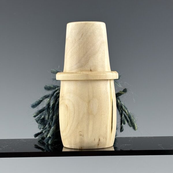 This little dude is turned from a maple branch. His nose is cherry and his beard is made from soft acrylic blue and green yarn.