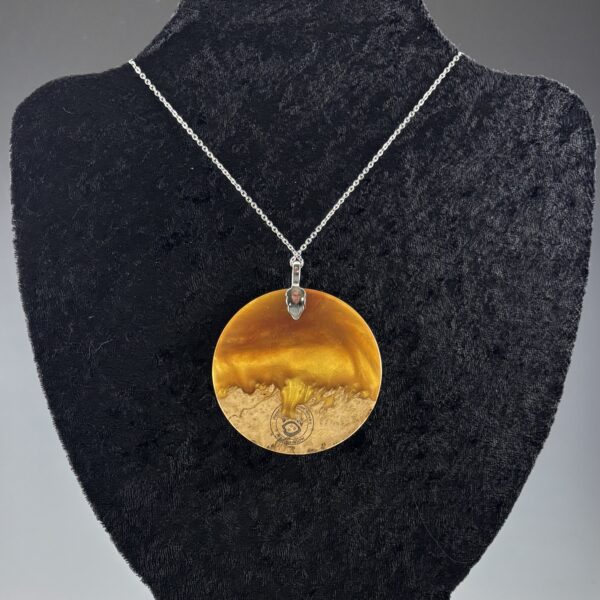 Large Gold Resin & Mallee Burl Pendant – 2.5″ diameter