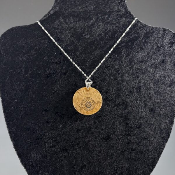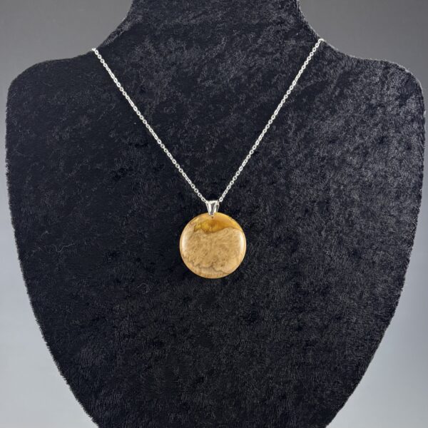 Small Gold Resin & Mallee Burl Pendant – just under 1.5″ diameter